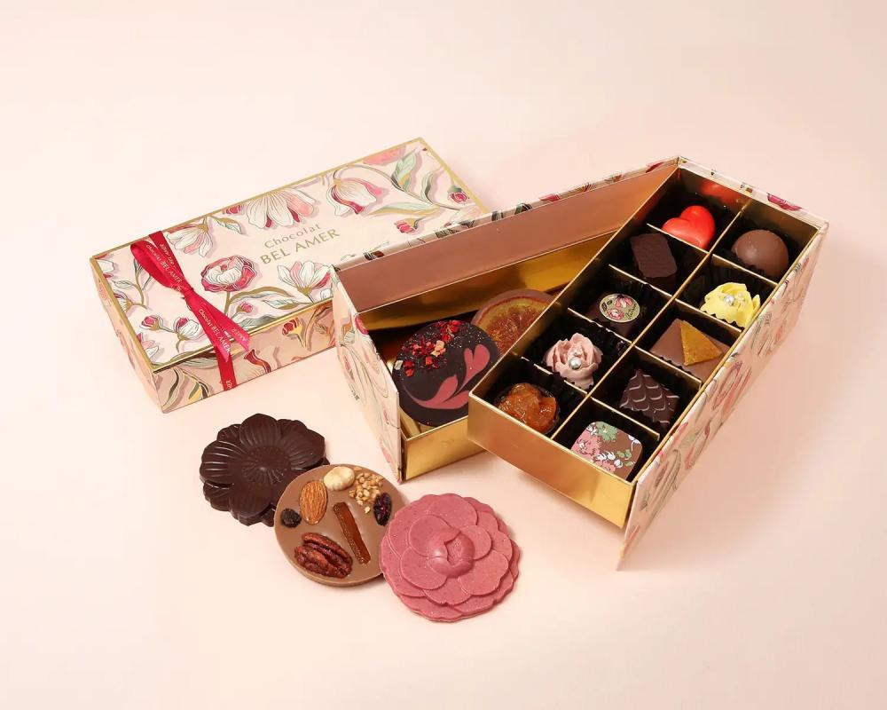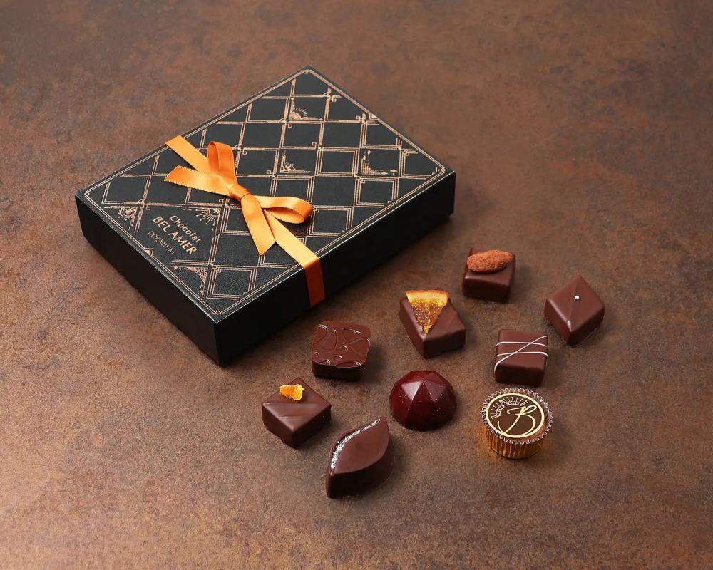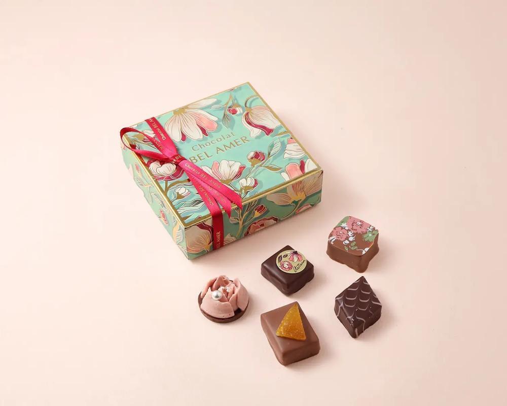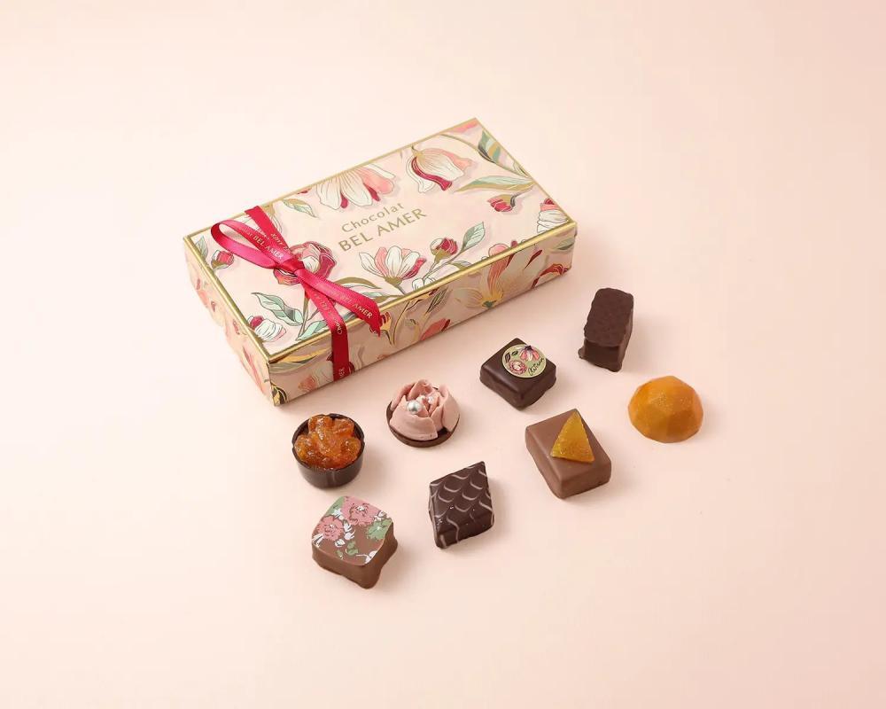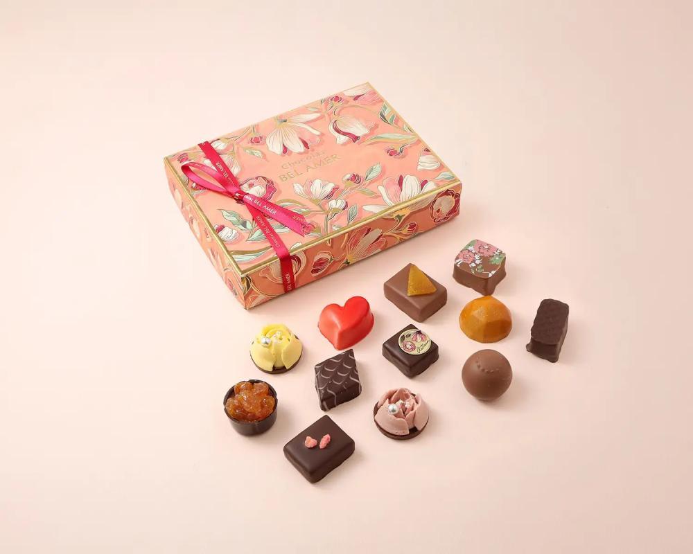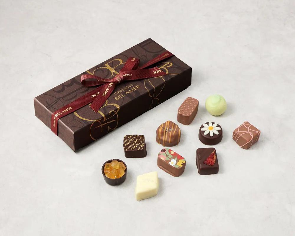 ベルアメールの人気ショコラを詰め合わせた、使いやすいサイズ感のギフトボックス。4個入りから10個入りまで幅広いラインアップが用意されており、贈る相手やシーンに合わせて選べるのが魅力です。
