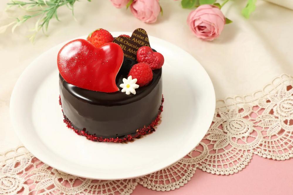 鮮やかな赤が目を引く、バレンタインシーズン限定の特別なアントルメです。甘酸っぱいフランボワーズの風味と、ビターチョコレートのコクを組み合わせ、華やかさと大人っぽさを兼ね備えた味わいに仕上げられています。