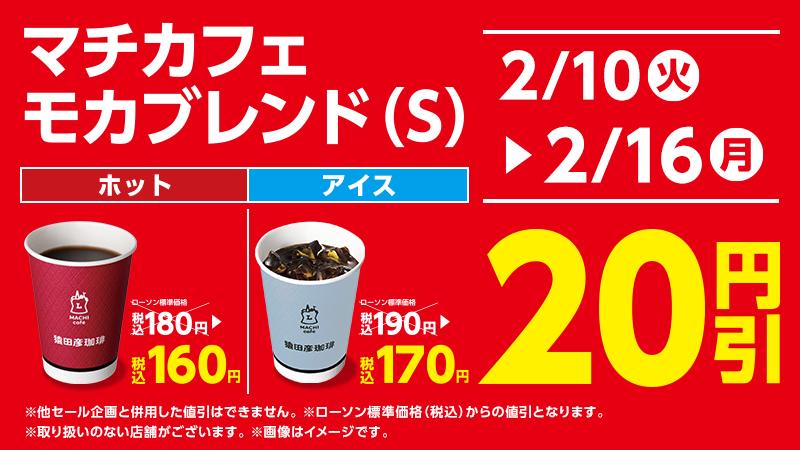 2月10日から16日までの期間、マチカフェの「モカブレンド(S)」と「アイスモカブレンド」をそれぞれ20円引きで購入できます。