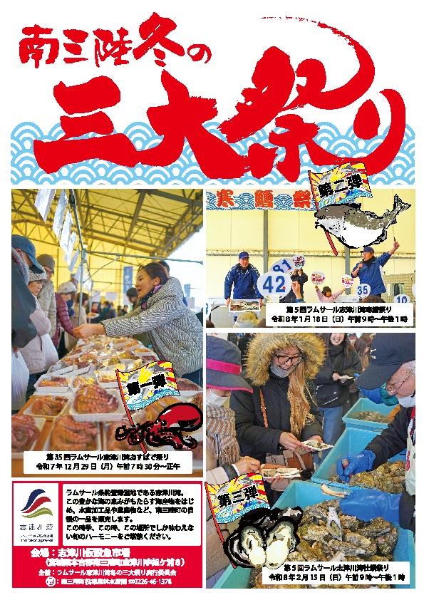 2026年2月15日、志津川仮設魚市場(本吉郡南三陸町志津川字旭ケ浦8)にて「南三陸冬の三大祭り第3弾 第5回ラムサール志津川湾牡蠣祭り」が開催されます。生産者による蒸しガキのふるまいも! 南三陸町は、ラムサール条約登録湿地である志津川湾の、豊かなミネラル分を吸収して育った、クリーミーで濃厚な味わいの「牡蠣」の名産地。ここで獲れる豊かな海の恵み、旬の牡蠣を使った料理を味わえるイベントです。なんと、カキ生産者による蒸しガキの無料配布もあります。無くなり次第終了なので、気になる人はお早めに。 入場無料。開催時間は9時から13時までです。