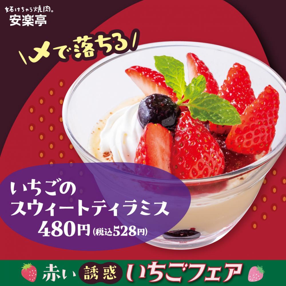 焼肉レストランの安楽亭では、2026年2月12日から3月末日まで、「赤い誘惑 いちごフェア」を開催しています。