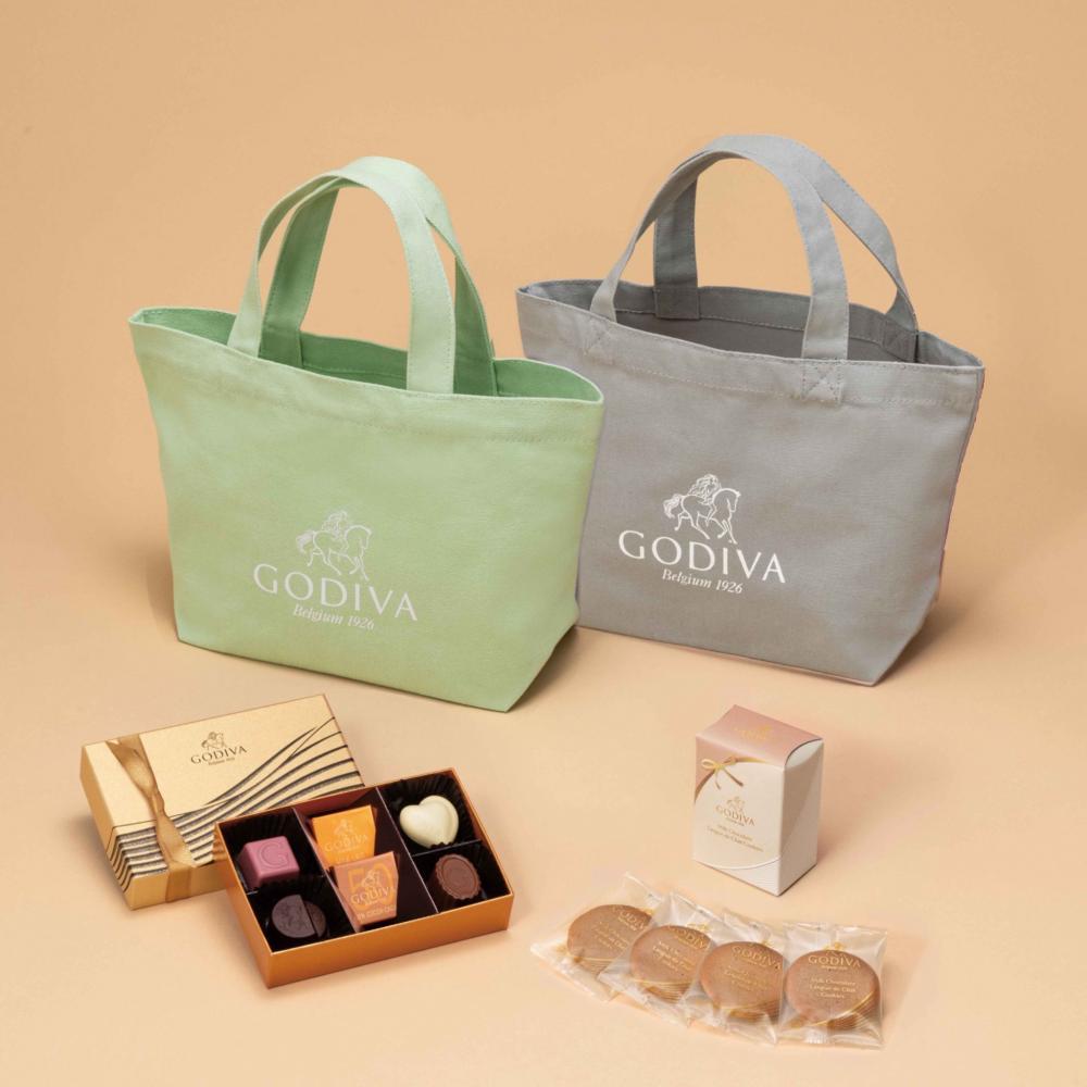 ゴディバの人気商品をオリジナルトートバッグに詰め合わせた特別なセットが登場。トートバッグは「ライトグリーン」と「グレー」の選べる2色展開です。価格は3635円。