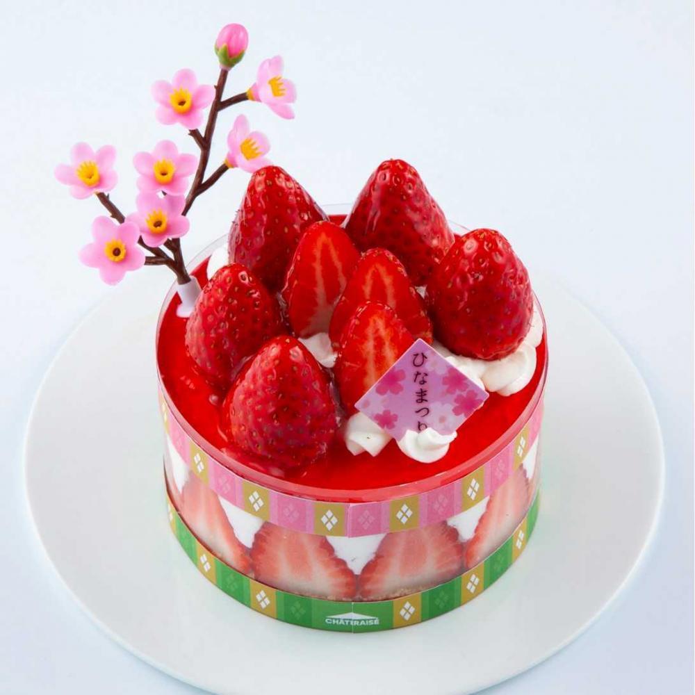 苺をたっぷり使用し、苺果肉が入った苺ソースとホイップクリームをサンド。苺の甘酸っぱさを存分に楽しめる贅沢な仕上がりで、ひなまつりにぴったりの華やかなデコレーションケーキです。