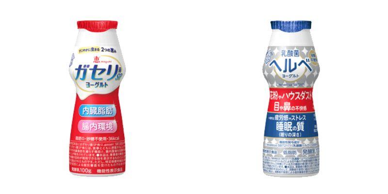1つめの対象商品は、雪印メグミルク「恵 ガセリ菌SP株ヨーグルト ドリンク」「乳酸菌ヘルべヨーグルト ドリンク」(各100g)です。