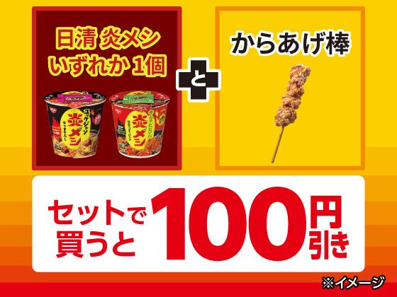 【日清「炎メシ」とからあげ棒セットで100円引き】