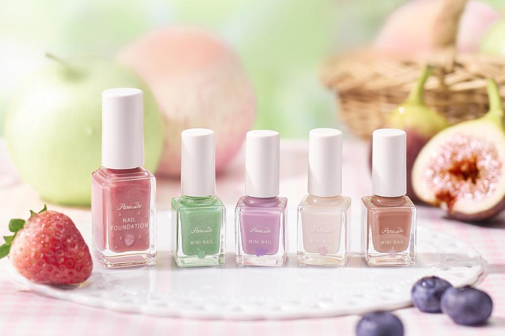 パラドゥの春のネイルコレクションのテーマは「Pick a Fruit」。「ネイルファンデーション」は1色、「ミニネイル」は4色、"もぎたてのフルーツ"をイメージしたネイルカラーが新登場しました。