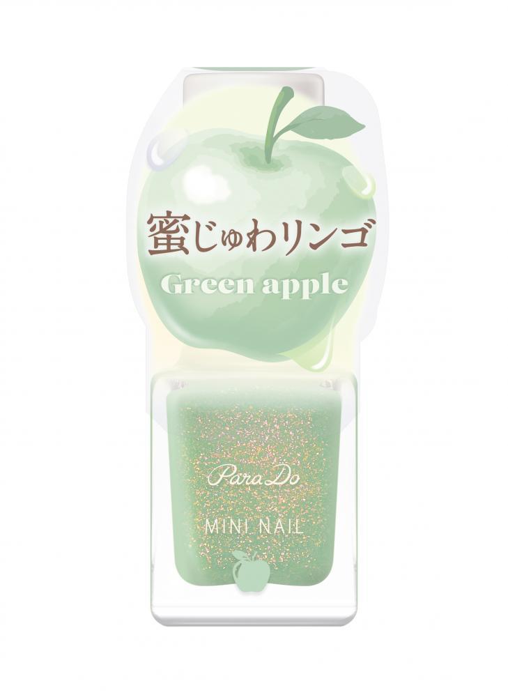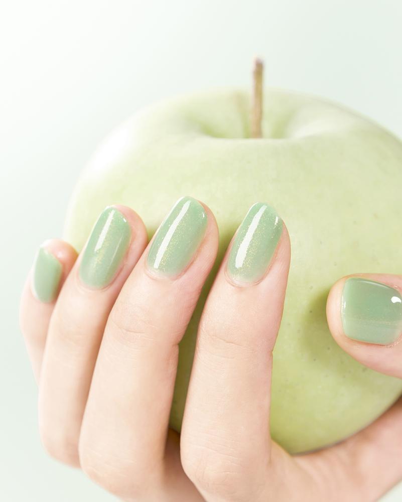 甘く爽やかな青りんごカラーが特徴。オレンジやピンクにきらめく蜜色ラメ入りです。
