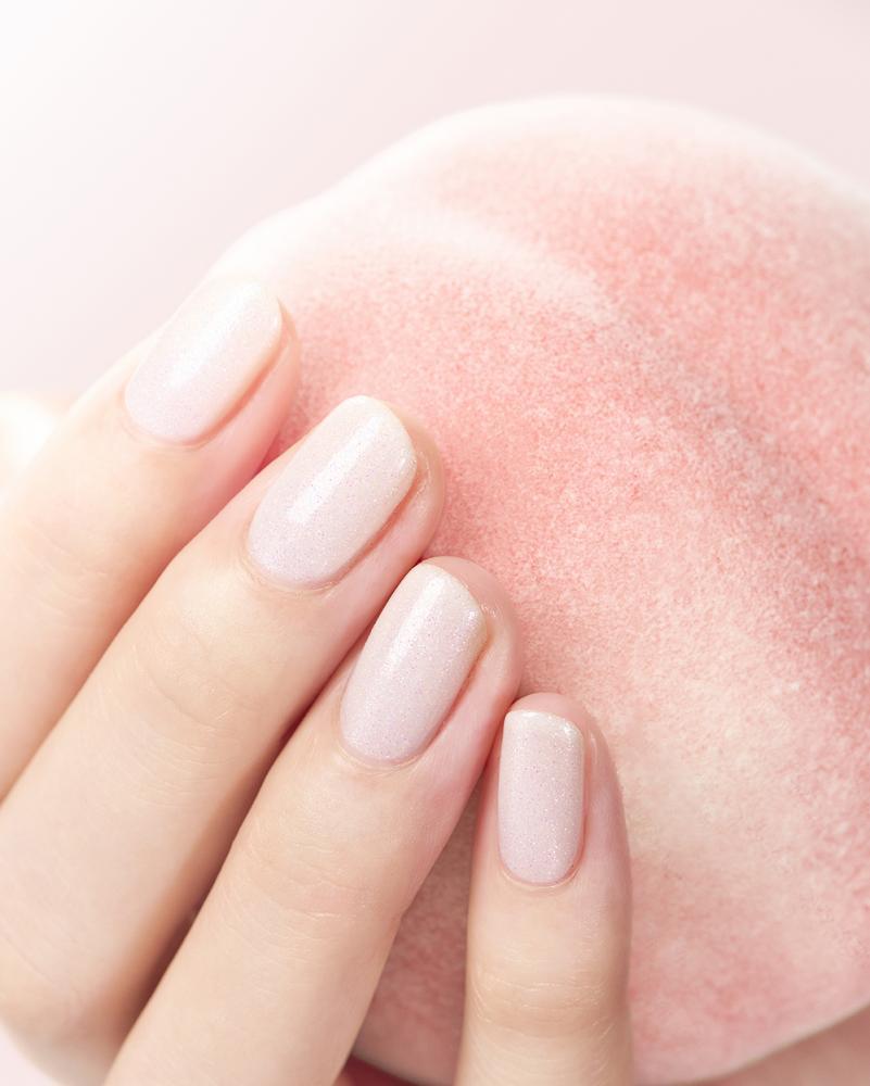 ふんわりとろける白桃のようなピンク。パープルの偏光ラメ、シルバーのラメがポイントです。