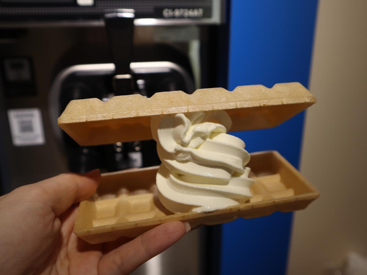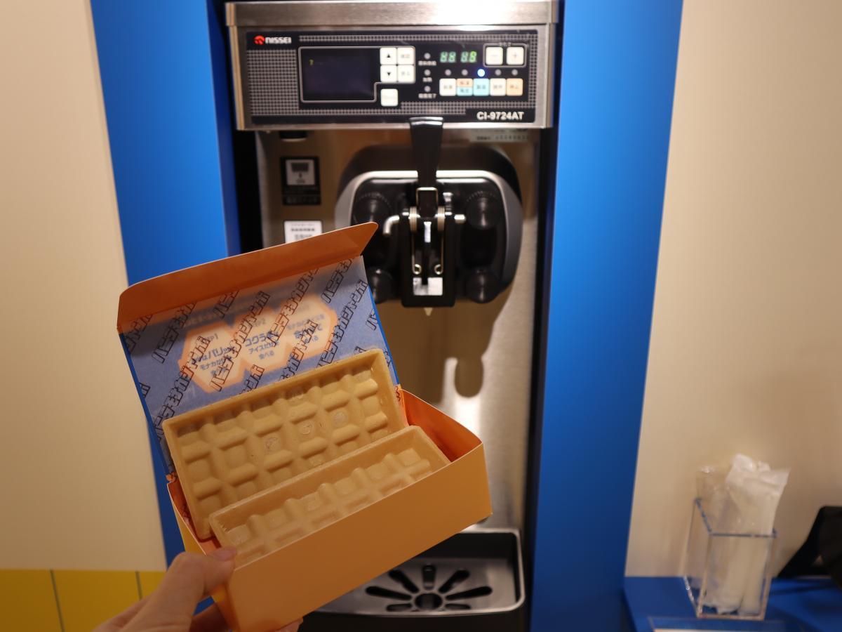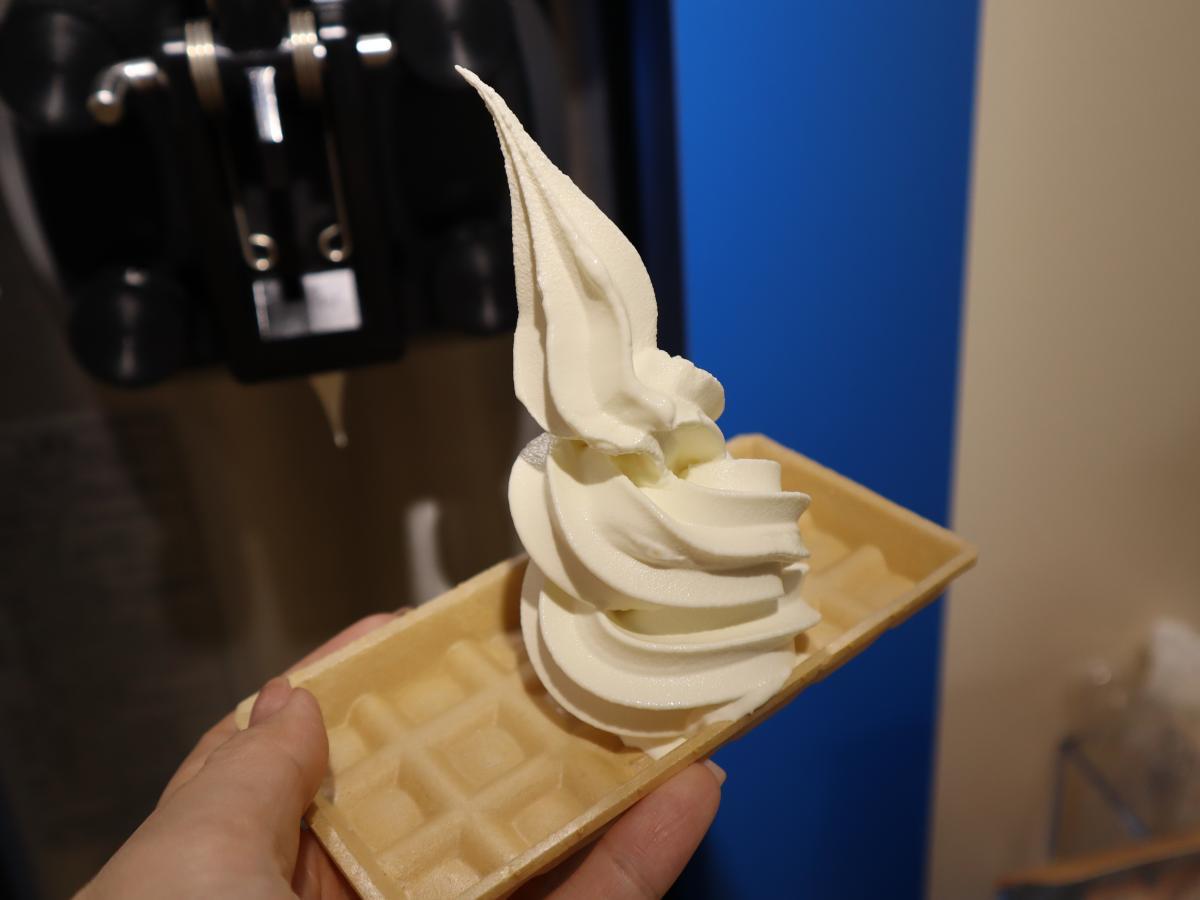 後ろの機械で好きなだけアイスを盛り付けていきます。アイスは本イベント限定の特別仕様で、絞り出しやすいソフトクリーム仕立てです。