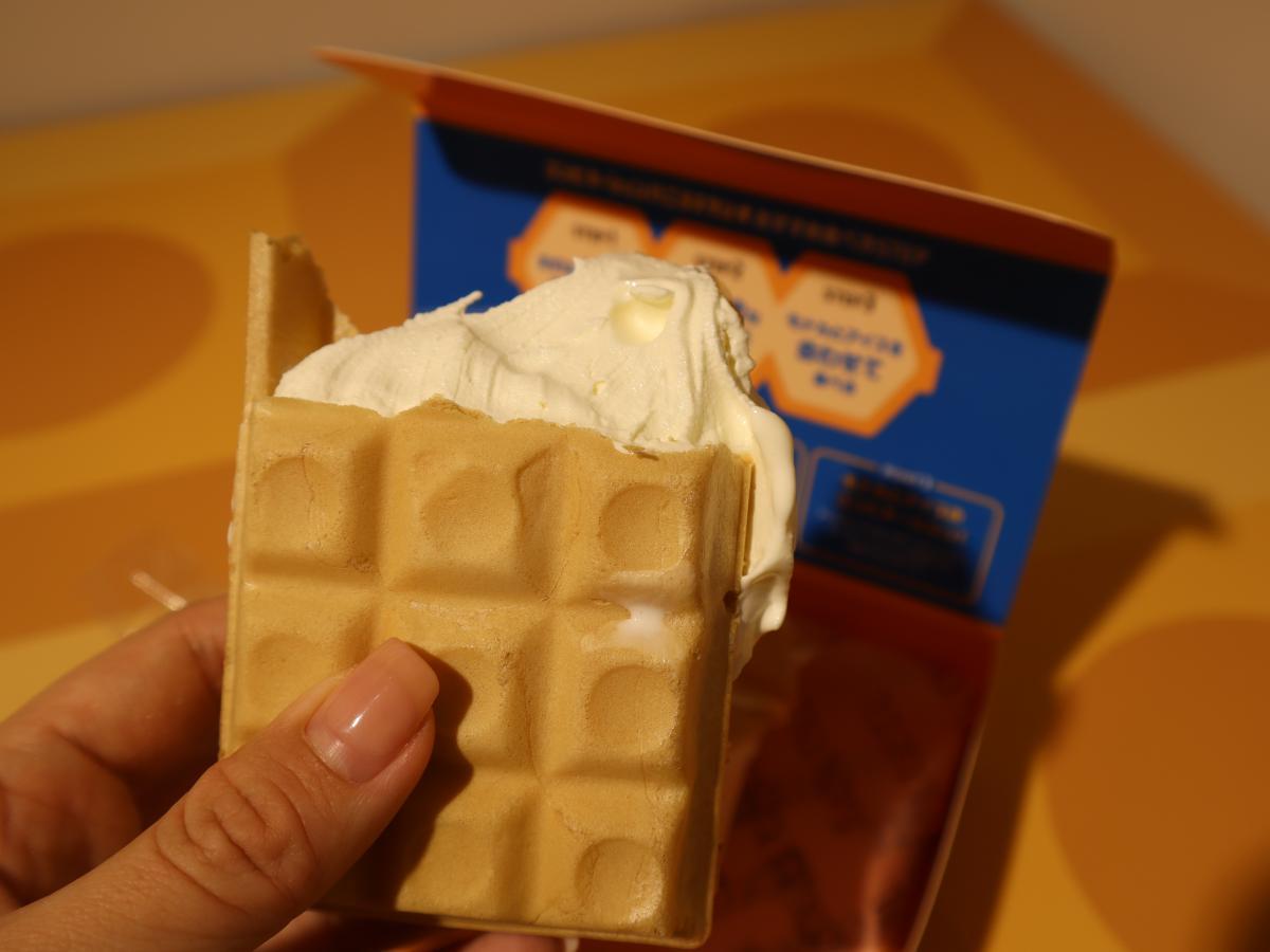 つづいてバニラアイスと一緒に口に入れてみました。ひんやりなめらかなアイスクリームとパリサクッな食感のコンビネーションがたまりません!