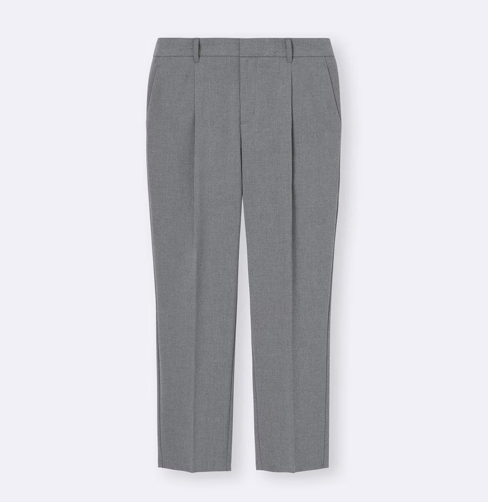 お手入れが簡単なイージーケア機能付きのきれいめパンツは会社員の味方。フロントにはタックが入っていて、気になるお腹まわりをすっきり見せてくれます。