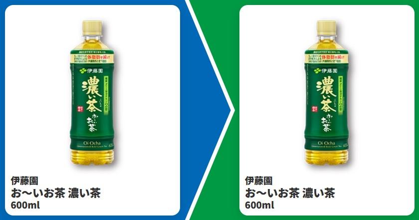 1つめの対象商品は、伊藤園「お~いお茶 濃い茶」(600ml)。1本購入すると、同商品1本と引き換えられる無料券がもらえます。