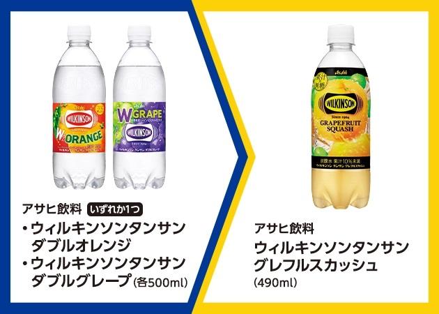 3つめの対象商品は、アサヒ「ウィルキンソンタンサン」の「ダブルオレンジ」と「ダブルグレープ」(各500ml)です。