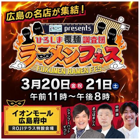 イオンモール広島府中(広島県安芸郡府中町大須)で、2026年3月20日と21日に「ピタニューpresents ひろしま覆麺調査団ラーメンフェス」が開催されます。