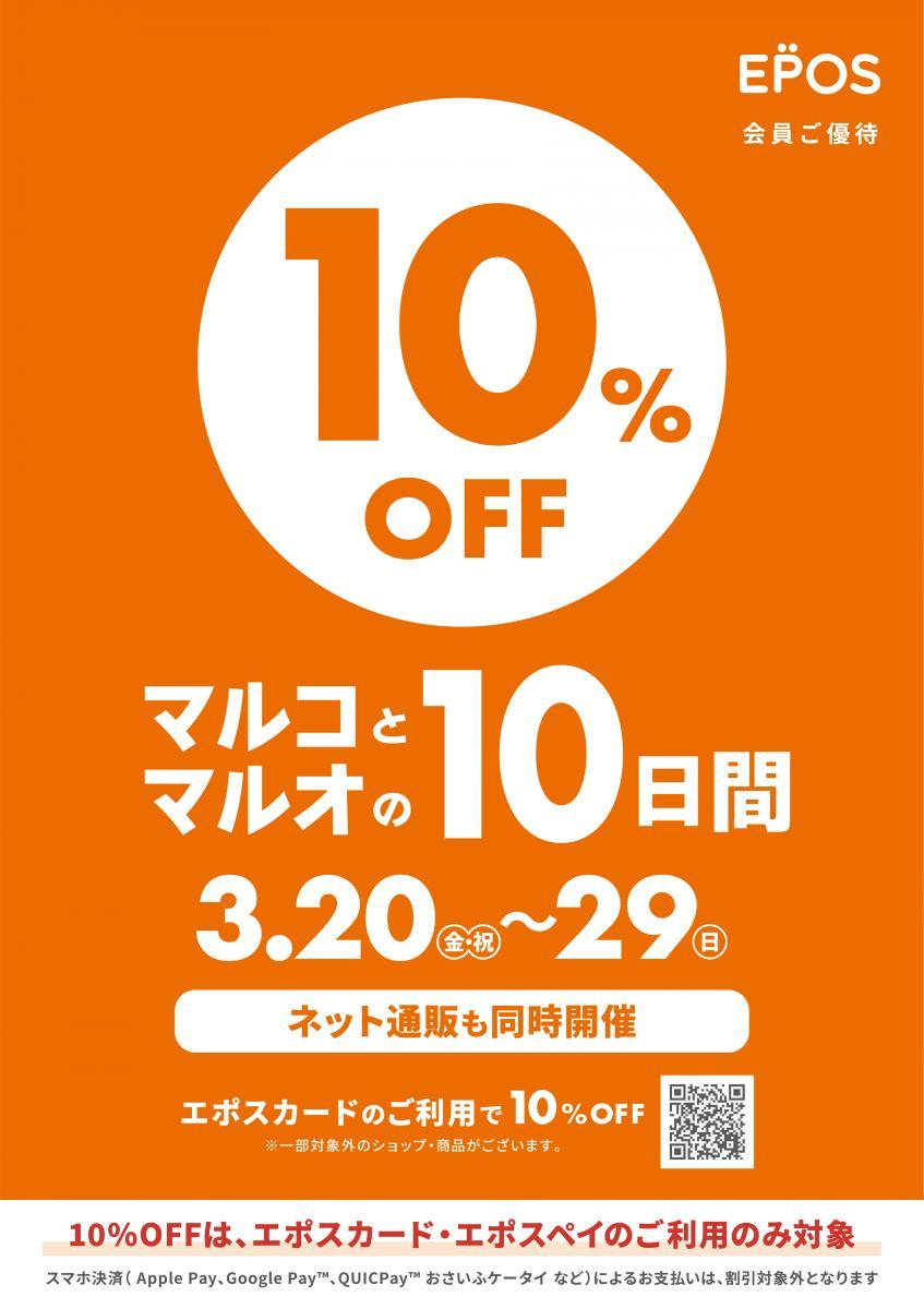 2026年3月20日から3月29日までの10日間、マルイ・モディ全店とマルイのネット通販「マルイウェブチャネル」で、エポスカード会員向けの優待キャンペーン「マルコとマルオの10日間」が開催中です。