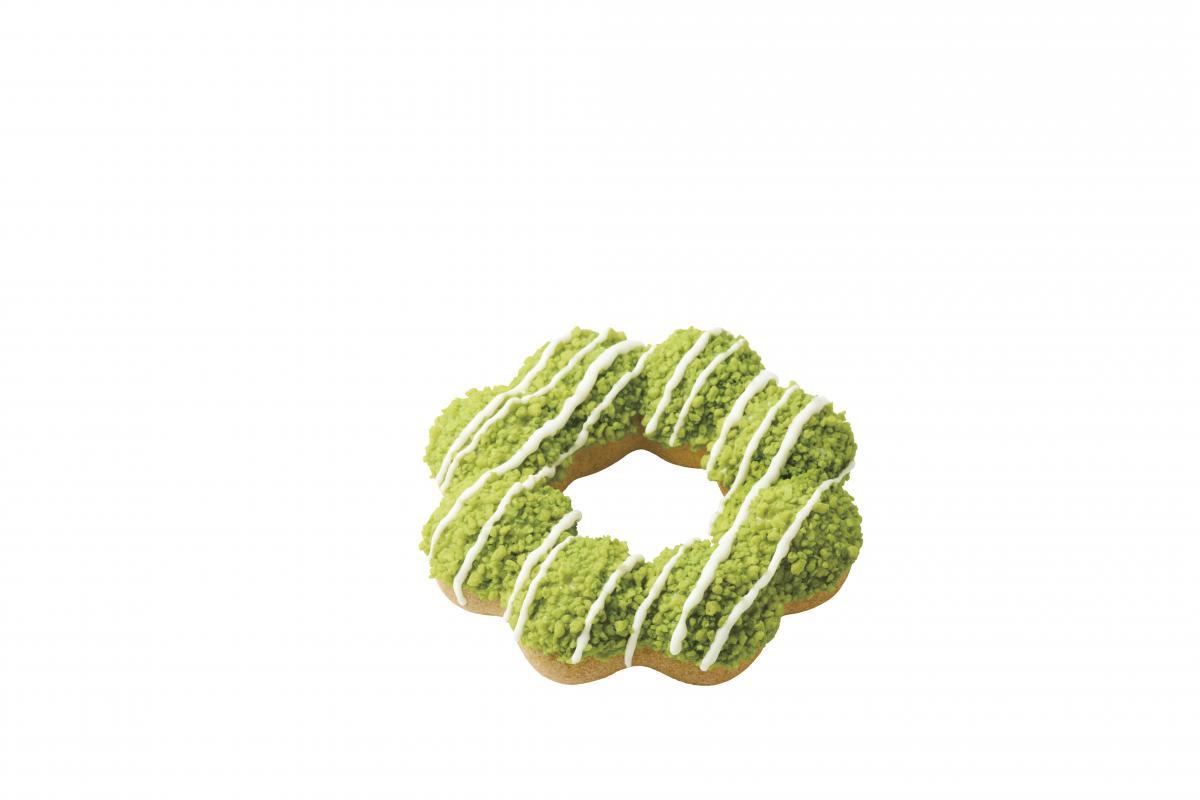 祇園辻利の宇治抹茶を練り込んだポン・デ・リング生地にホワイトチョコをコーティングし、宇治抹茶クランチをたっぷりトッピング。抹茶ミルクのような味わいとクランチのザクザク食感が楽しめます。