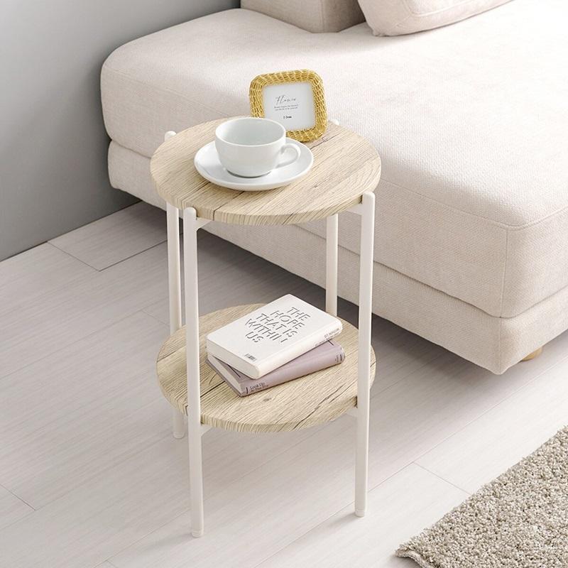 直径30cmのコンパクトサイズの円形サイドテーブルです。ソファやベッド横などに設置して、ちょっとした物を置くことができます。