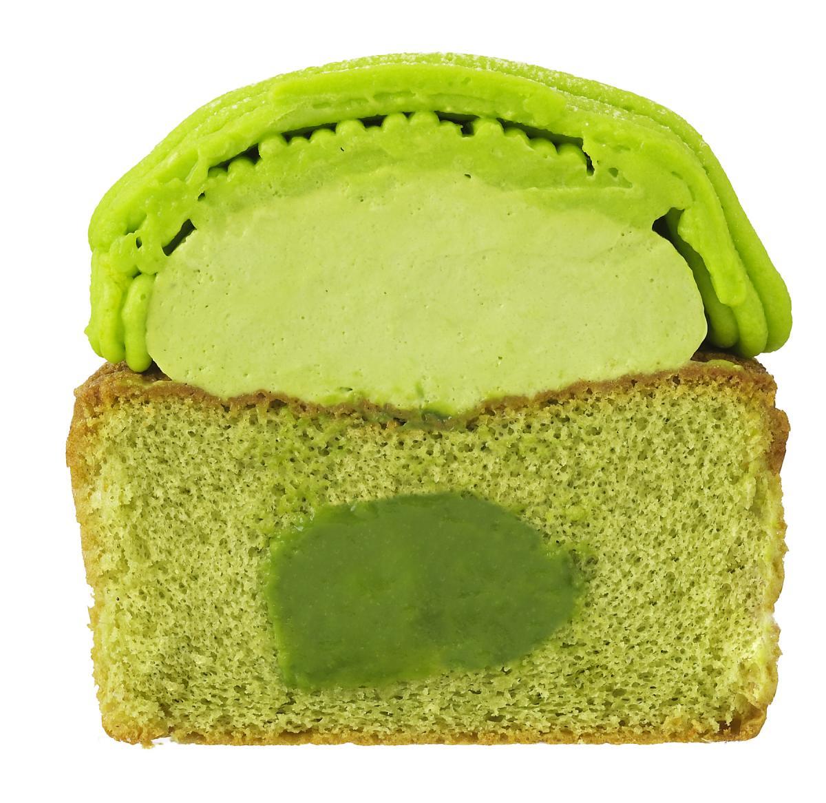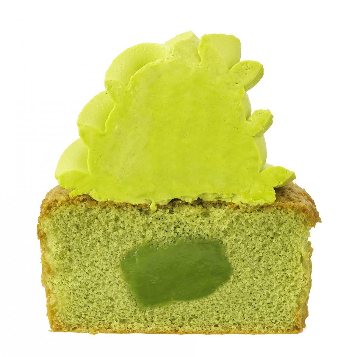 濃いめに仕立てた抹茶カスタード入り抹茶スポンジの上に、なめらかな抹茶クリームがたっぷりトッピングされています。