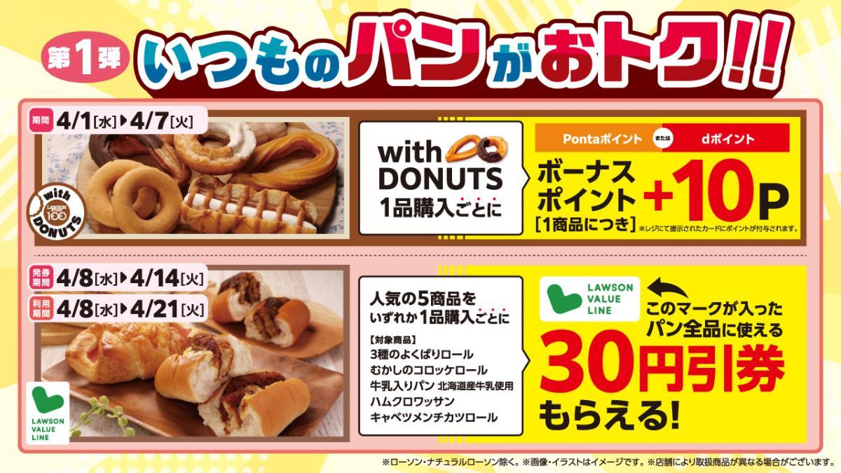ローソンストア100では、2026年4月1日から4月28日まで、パンやごはんなどの主食カテゴリーを中心としたおトク企画を実施しています。