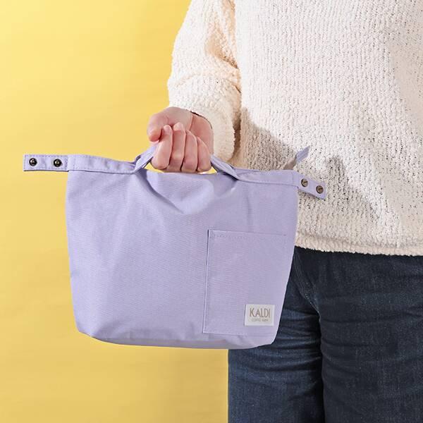 春らしいラベンダーとベージュの2色から選べるランチバッグは、くるっと丸めると持ち手のデザインが変わる2WAYタイプ。はっ水加工に簡易保冷機能、スリムに折り畳むこともできるので、持ち運びも安心です。