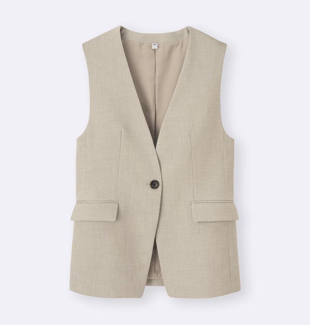 カジュアルなスタイルにも着まわしやすいカラーレスデザインのベストです。1枚あるとコーデの幅が広がります。さらっとした表面感とほどよいハリ感のある素材です。