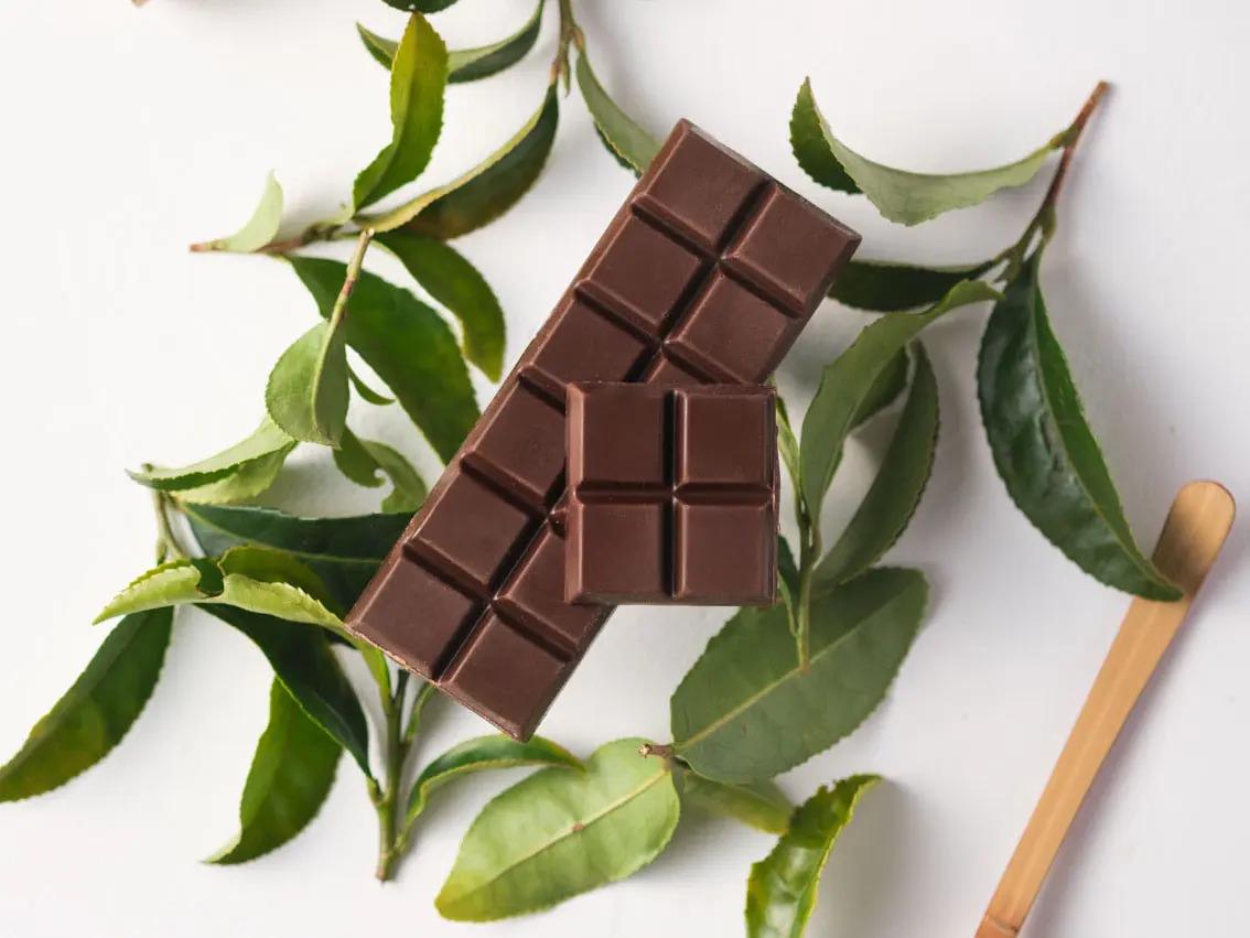 ガーナ産カカオ55%のチョコレートに、京都・宇治抹茶をブレンドしたタブレットショコラ。抹茶のふくよかな香りと、カカオの奥深い風味が重なり合います。
