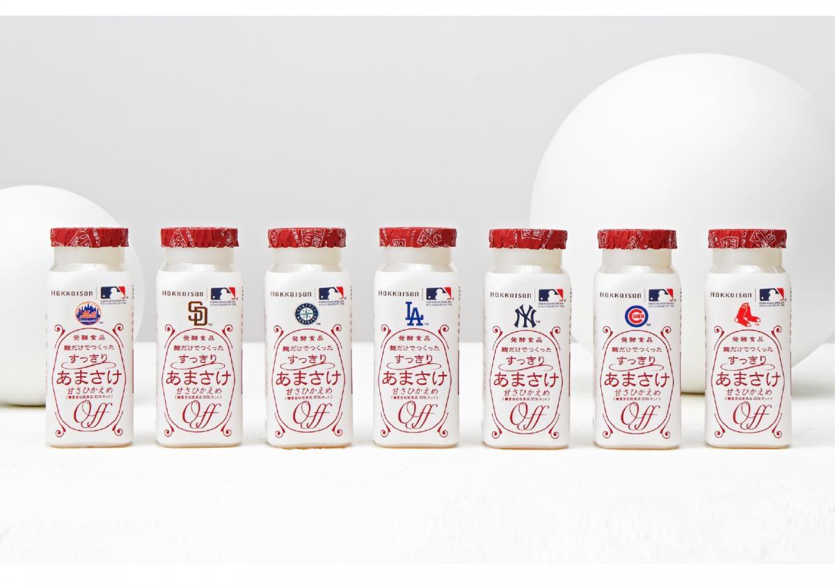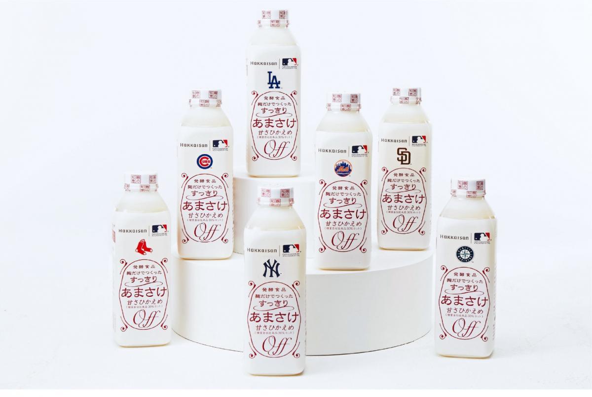 八海醸造は、MLBの人気球団ロゴをあしらった限定商品「麹だけでつくったすっきりあまさけMLBコレクションラベル」を、2026年3月下旬から日本国内で順次販売しています。