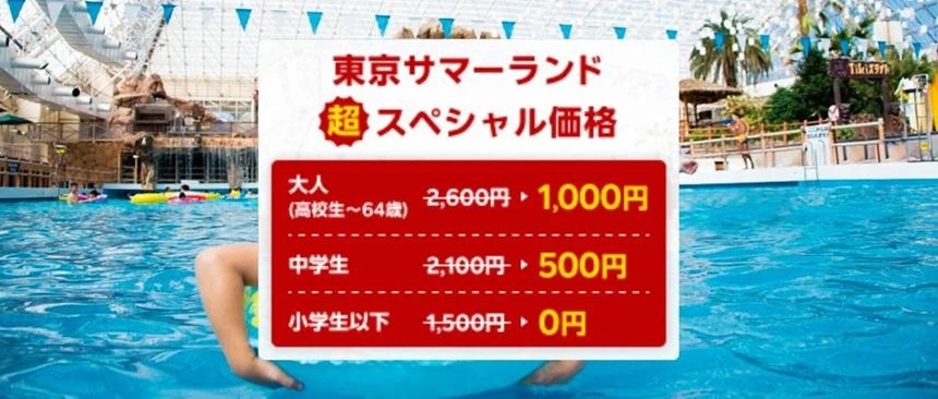 2026年4月13日現在、楽天グループの予約サイト「楽天トラベル観光体験」では "最大76%オフ"のお得な1Dayパス「東京サマーランド 感謝デー チケット」が販売されています。数量・期間限定です。