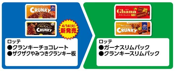 2つめの対象商品は、ロッテ「クランキーチョコレート」「ザクザクやみつきクランキー板」。