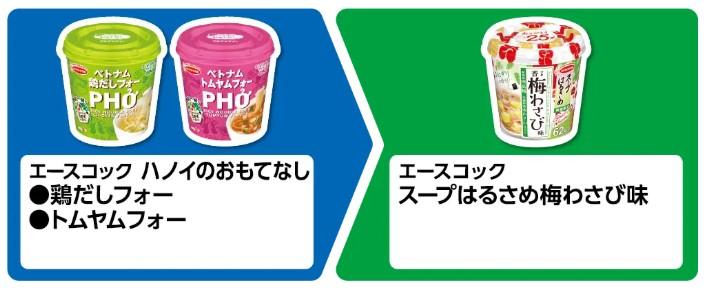 4つめの対象商品は、エースコック「ハノイのおもてなし」の「鶏だしフォー」「トムヤムフォー」です。
