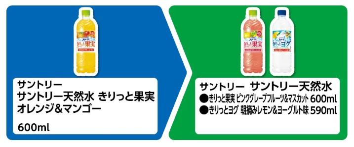 1本購入すると、「サントリー天然水」の「きりっと果実 ピンクグレープフルーツ&マスカット」(600ml)、「きりっとヨグ 朝摘みレモン&ヨーグルト味」(590ml)のどちらか1本と引き換えられる無料券がもらえます。