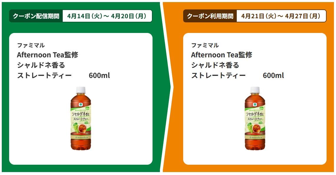 対象商品は、ファミマル「Afternoon Tea監修 シャルドネ香る ストレートティー」(600ml)です。