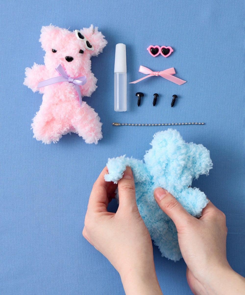 SNSで話題のモールドールを、おうちで簡単に作れるキット。ふわふわのモールをねじって形を作り、顔やリボンなどのパーツを付けるだけで、自分だけのドールが完成します。完成したモールドールは、バッグチャームにしたり、部屋に飾ったりして楽しめますよ。