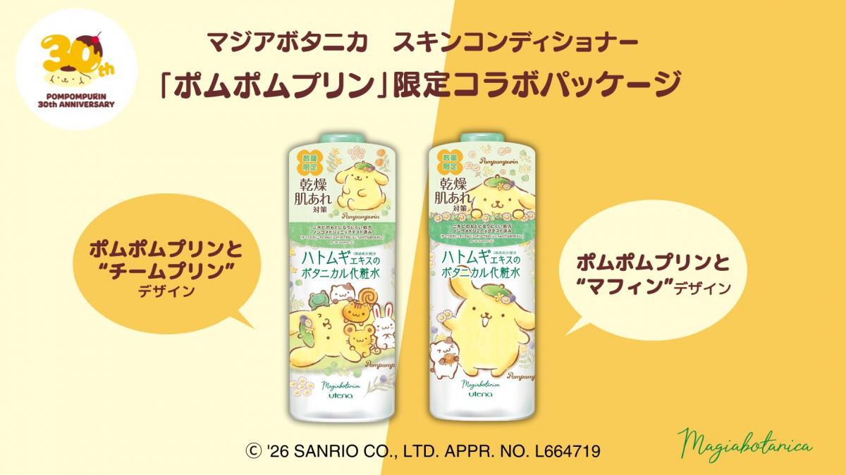 ウテナが展開するボタニカルスキンケアシリーズ「マジアボタニカ」は、2026年4月16日から「マジアボタニカ スキンコンディショナー」のポムポムプリン限定コラボパッケージ2種を数量限定で順次販売しています。