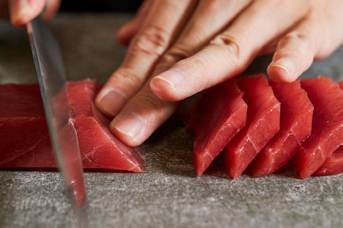 神田店限定! 豊洲直送骨付きマグロの中落ちを提供