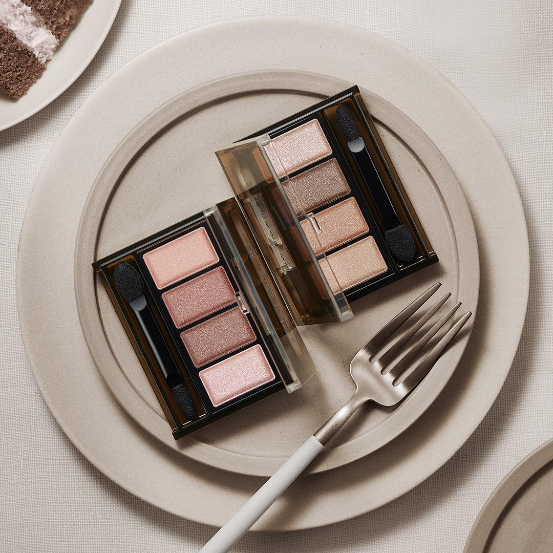 画像左の「BR-9 ピンクムースブラウン」は、やわらかい印象に仕上がるまろやかなピンクブラウン系カラー。画像右の「BR-10 グレージュムースブラウン」は、肌なじみが良く、目もとに自然な陰影感を演出します。重ねてもくすまない、クリアなツヤ感も魅力的。