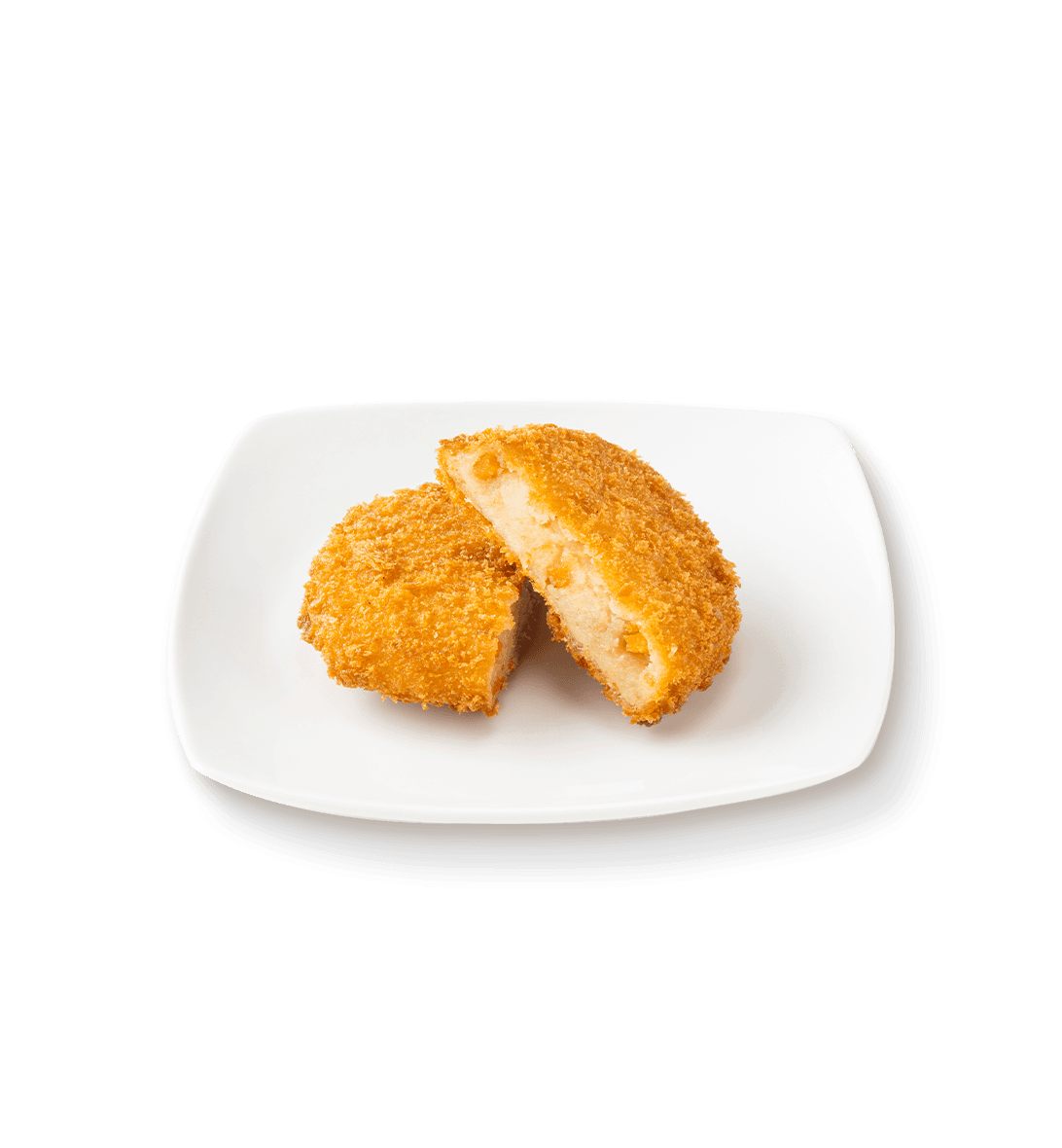 肉じゃがの味付けに仕立てたコロッケには、北海道産じゃがいも、人参、しらたき、玉ねぎが入っています。