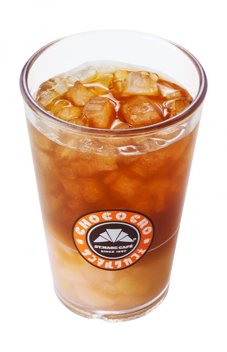 山梨県産の白桃とアイスティーを組み合わせ、すっきりゴクゴクと飲める、これからのシーズンに合うドリンクです。グラスの底に沈んだ新鮮な白桃果肉ソースはスプーンで食べられます。また、アイスティーからも白桃を感じられるよう仕上げています。