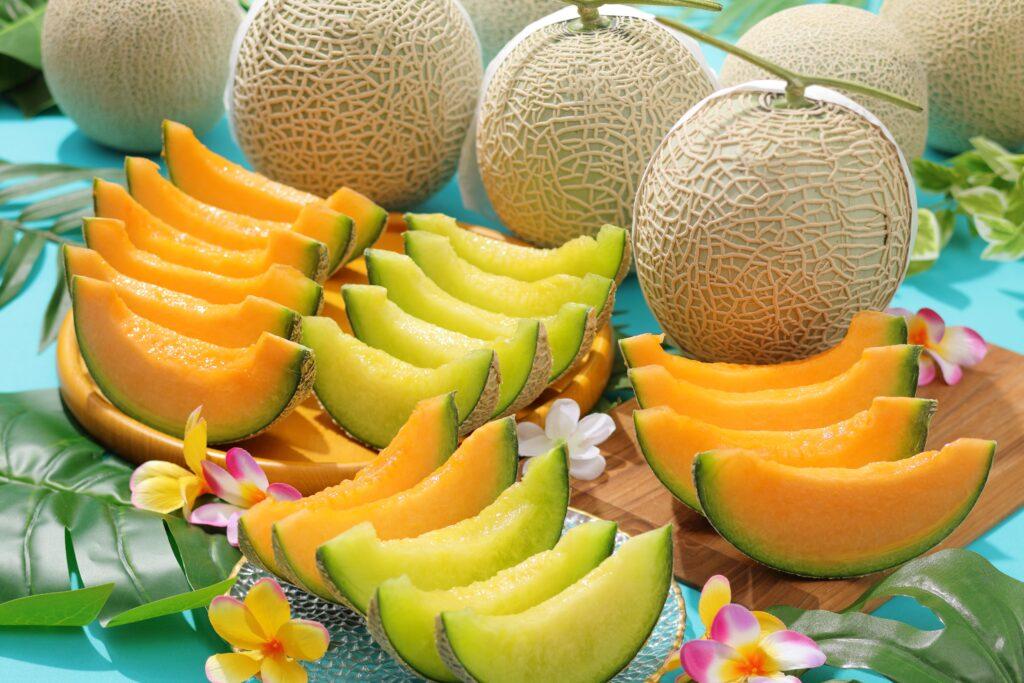 日本各地の様々な品種から、今が食べごろの国産メロンが並びます。とろけるような食感と上品な甘さが特徴です。