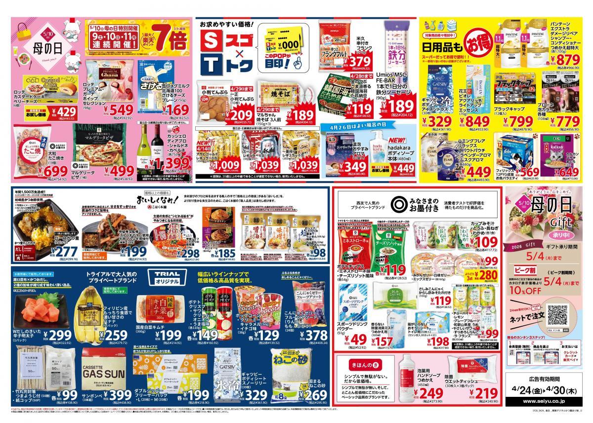 スーパーの「西友」は、2026年4月24日から30日までの期間を対象にしたチラシを公開中です。