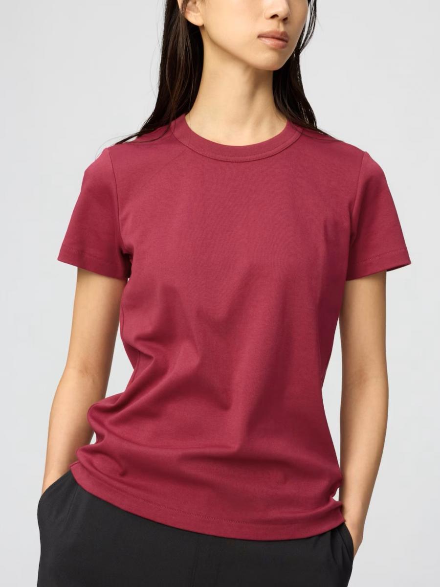 すっきりとしたシルエットで、Tシャツなのにきちんと感をキープ。大人女性こそ挑戦したい上品見えTシャツです。洗濯を繰り返してもヘタりにくいのも嬉しいポイント。