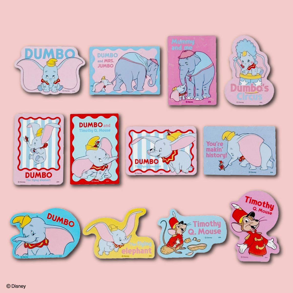頑張り屋の「ダンボ」のチャーミングな仕草や表情が盛りだくさん。さらに、友達のネズミ「ティモシー」やお母さんの「ジャンボ」も描かれています。