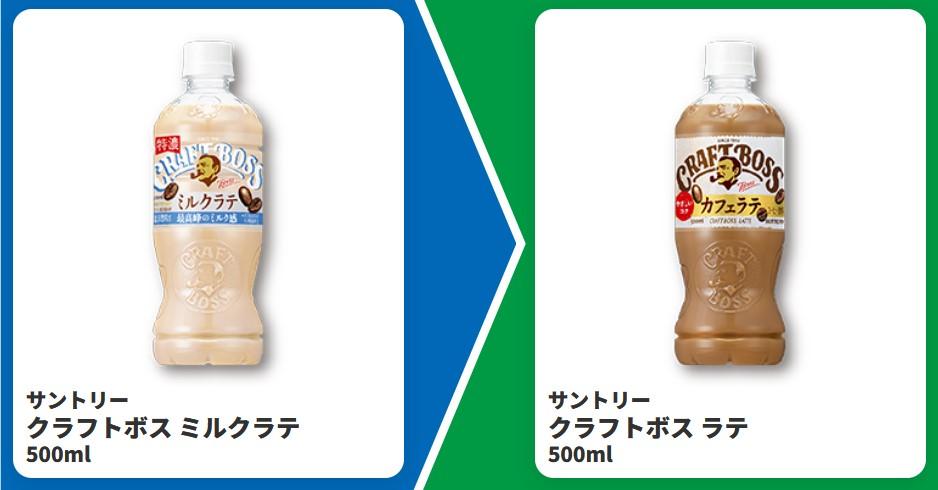 1個目の対象商品は、サントリー「クラフトボス ミルクラテ」(500ml)です。